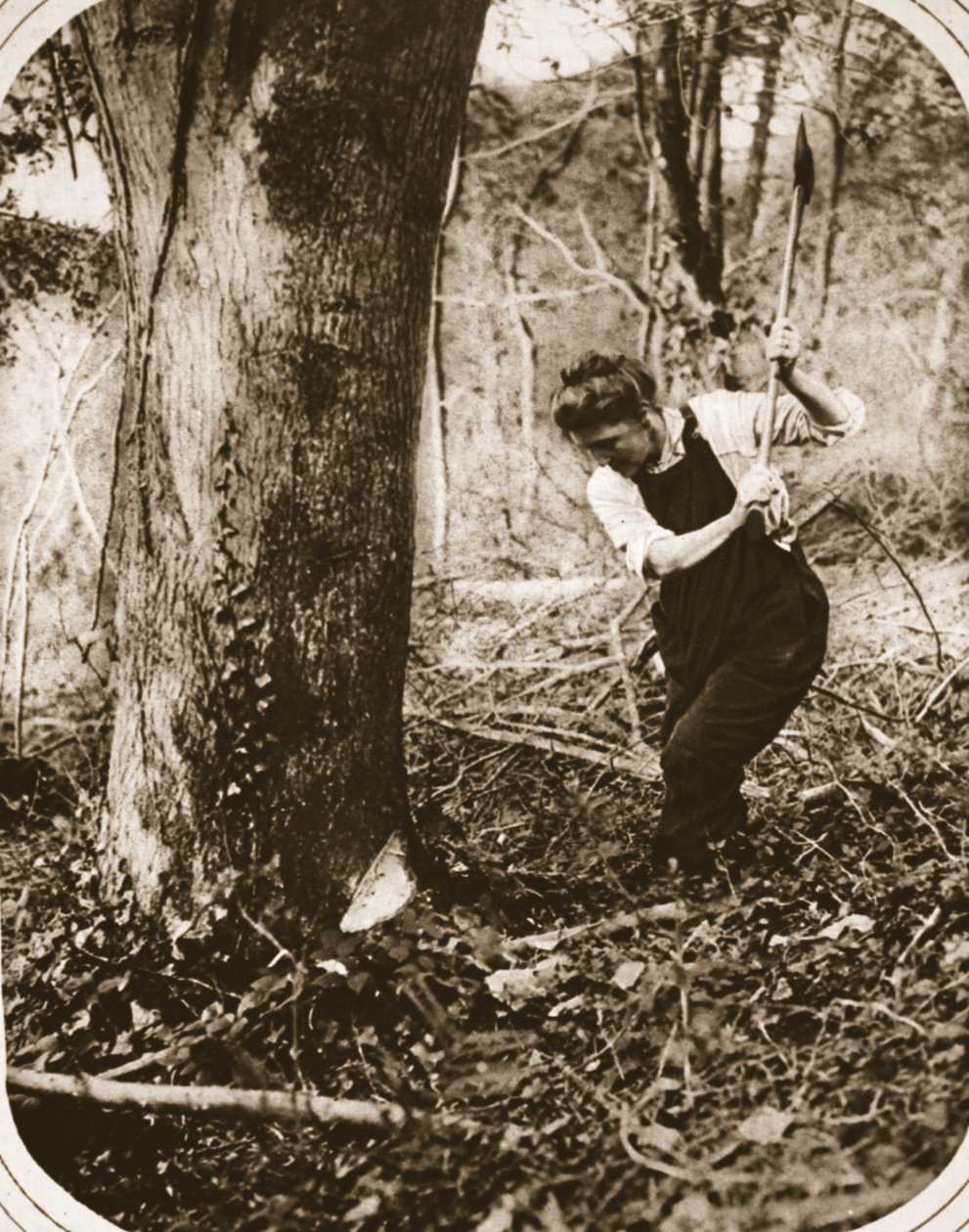 A strenuous woman-worker at Weston-Super-Mare; felling trees in a Somerset wood(A strenuous woman-worker at Weston-Super-Mare; felling trees in a Somerset wood, illustration from The Illustrated War News, September 1916 (sepia photo))English Photographer |