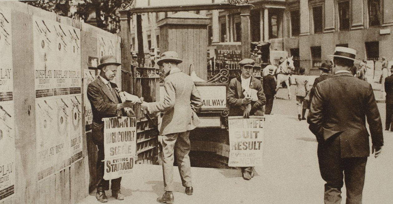 Newspaper sellers in Trafalgar Square, from Wonderful London, published 1926-27(Newspaper sellers in Trafalgar Square, from Wonderful London, published 1926-27 (photogravure))English Photographer |