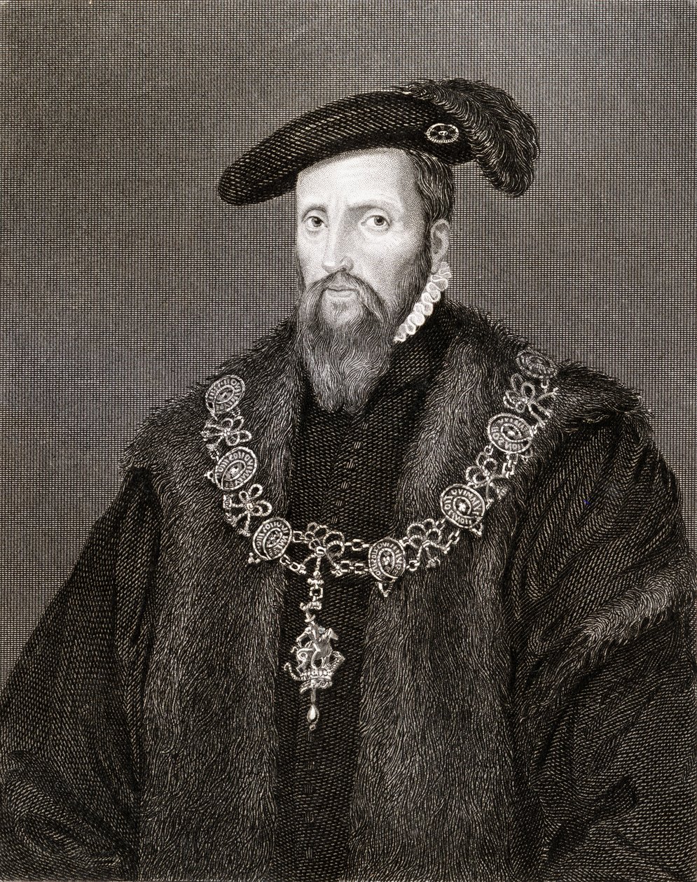 male · 1st earl of hertford · known as the protector · chain of office · felt hat · fur trimmed cloak · baron · c16th aristocracy · Private Collection / Bridgeman Images |