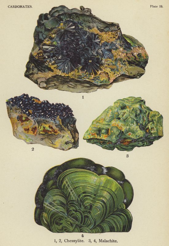 Carbonates, chessylite, malachite(Carbonates, chessylite, malachite (colour litho))English School |