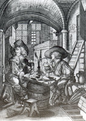 17th century · 20th century · smoking · engraving · gamble · dice · game · tobacco · black and white · mzengraving · / Bridgeman Images