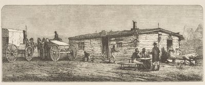 19th century · drink · wagon · hitch · servant · slavery · enslaved person · north america · america (continent) · engraving · african-american · population · post office · table · furniture · transport · travel · colorado · black and white · outside · cabin · housing · pioneer (new world) · white (ethnicity) · black (ethnicity) · delivering · postal system · horse and cart · wagon · north america · mail · covered · log cabin · america · delivery · sorting office · resting · usa · colorado · Private Collection / Bridgeman Images