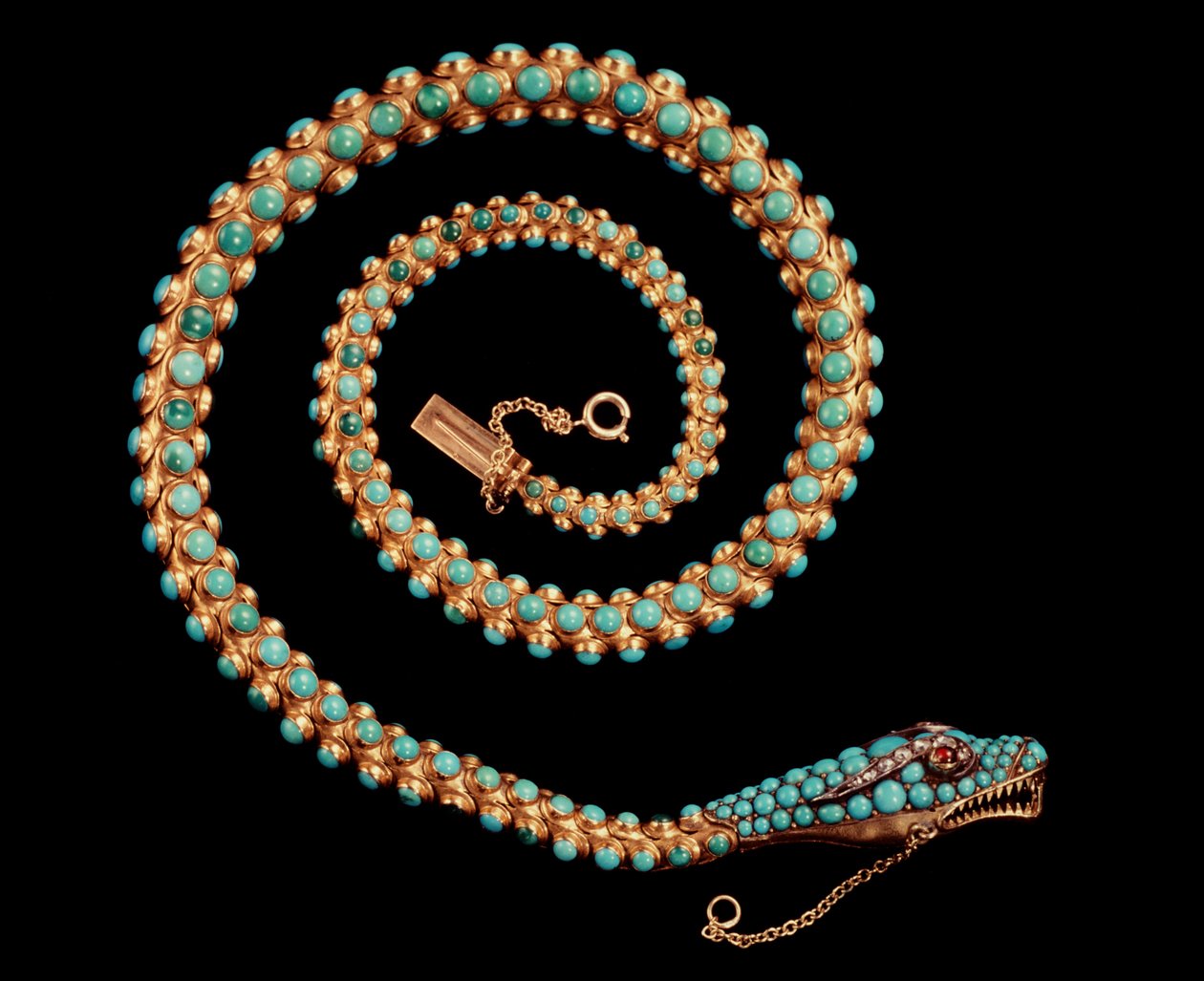 Snake necklace, 1844(Snake necklace, 1844 (gold with pave-set diamonds, garnets and turquoises))English School |