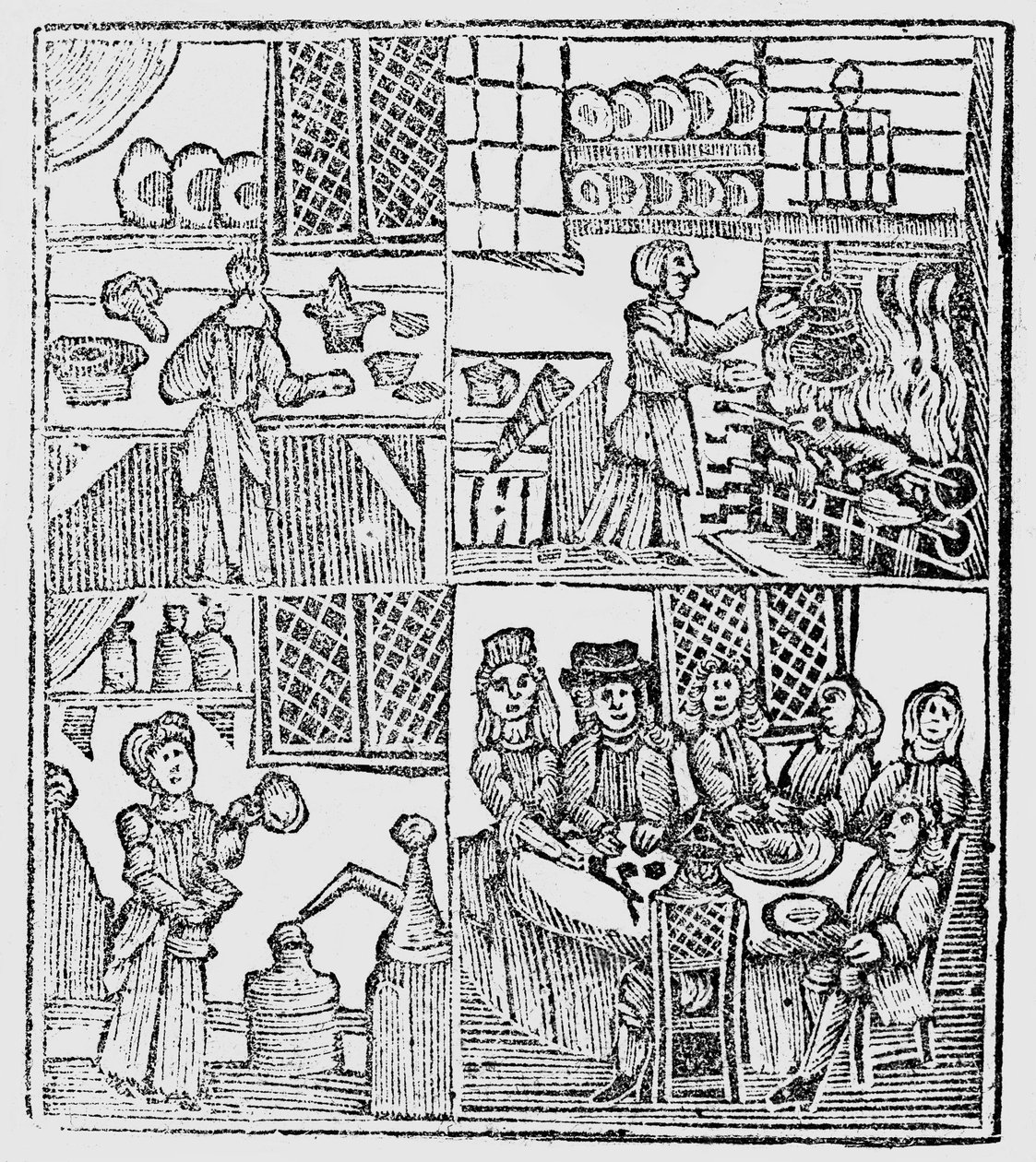 distilling · still room · meal · table · spit-roasting · baking · bakery · open fire · cooking · pastry · rolling · preparing · eating · tudor · elizabethan · preparation · food · cook · eating · dining room · interior · roasting meat · fireplace · Private Collection / Bridgeman Images |