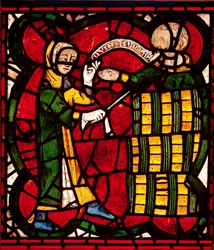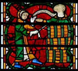 Window depicting a barrel seller(Window depicting a barrel seller, c.1300 )English School |