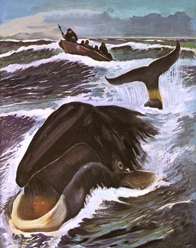 whale hunting · whales · mouth · harpoon · fishing · Private Collection / Bridgeman Images · / Look and Learn |