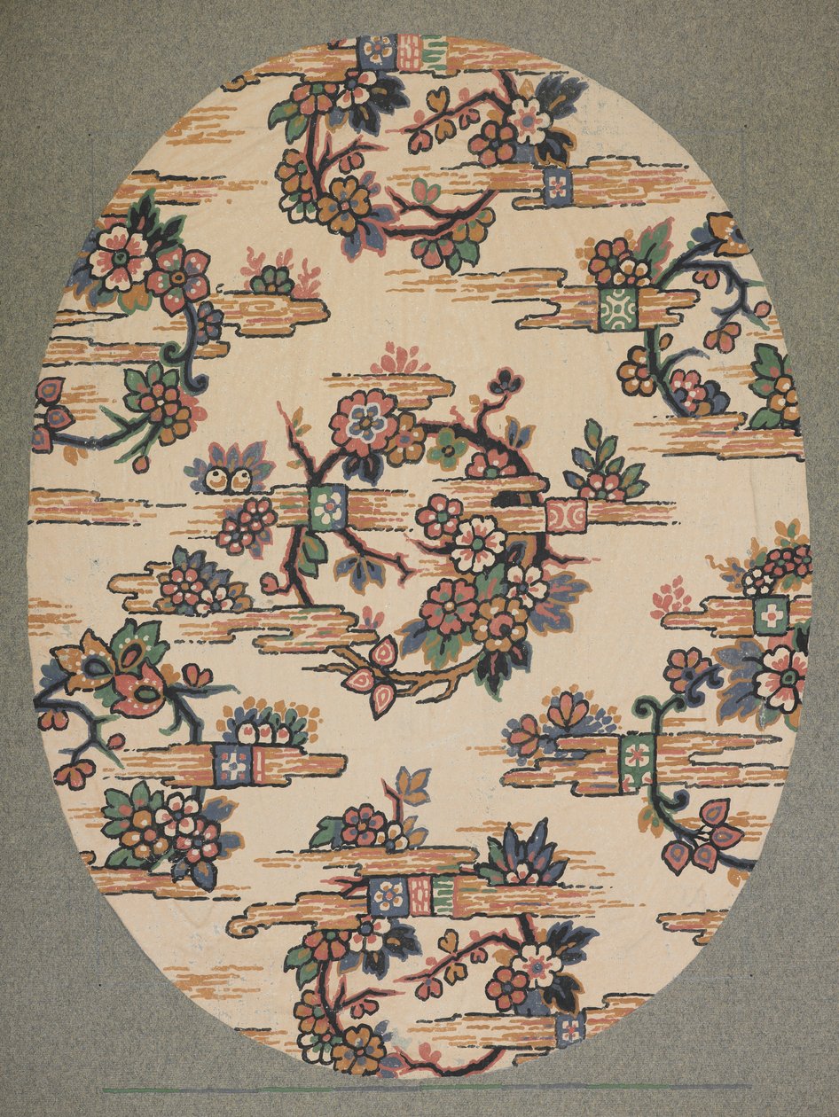 garland · roundel · flowers · flower · floral · oval · beige · repeating pattern · chinoiserie · Carpet Museum Archive, Kidderminster / Art Deco Collection / Bridgeman Images |