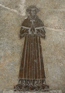 tomb · effigy · inlay · portrait · funerary · male · full length · inscription · banner · text · scroll · gesturing · praying · prayer · robes · floor · stone · Courtesy of the Warden and Scholars of New College, Oxford / Bridgeman Images