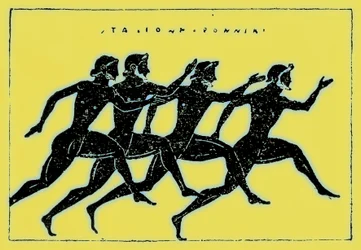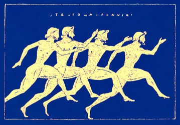 ancient greek · olympic games · olympics · male · athlete · athletes · competition · competitor · competitors · competing · race · racing · running · movement · motion · winning · sport · sportsmen · sportsman · athletics · classical · nude · greece · beard · bearded · greeks · speed · blue · yellow · Private Collection / Bridgeman Images · / Look and Learn