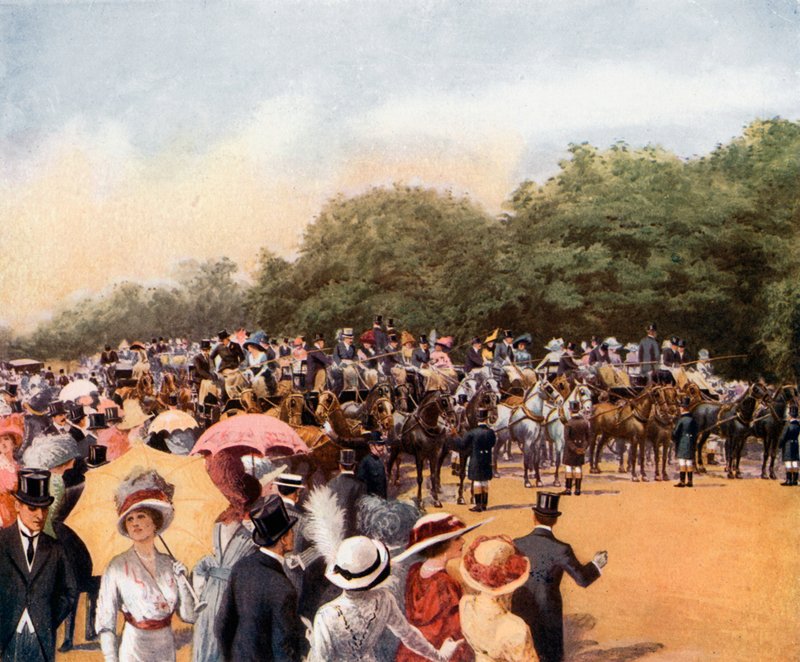 londons social calendar · london · society · meet · coaching club · hyde park · Private Collection / Bridgeman Images · / Look and Learn |