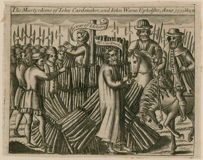 london · smithfield · martyrs · martyr · burnt · burned · stake · persecution · religious · john cardmaker · john warne · idolatry · Private Collection / Bridgeman Images · / Look and Learn