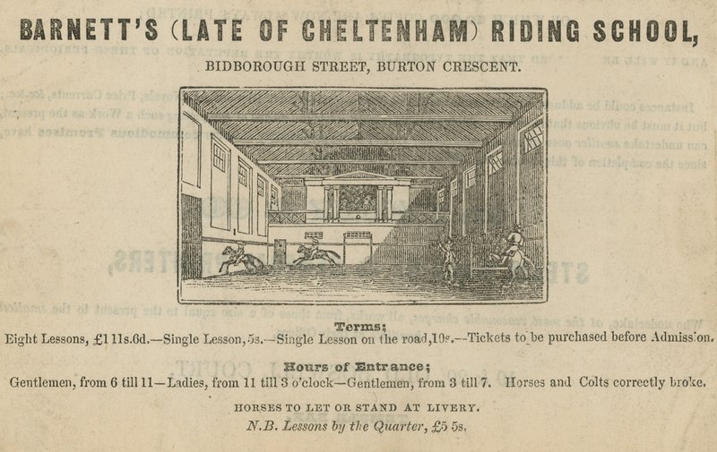 Advertisement for Barnett's Riding School(Advertisement for Barnetts Riding School )English School |