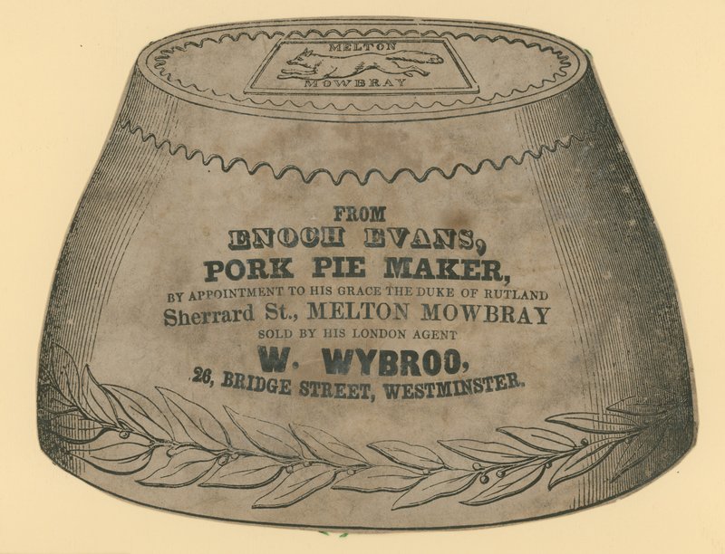 trade cards · advertisements · advertising · pies · pork pies · melton mowbray · advertisement · enoch evans · Private Collection / Bridgeman Images · / Look and Learn |