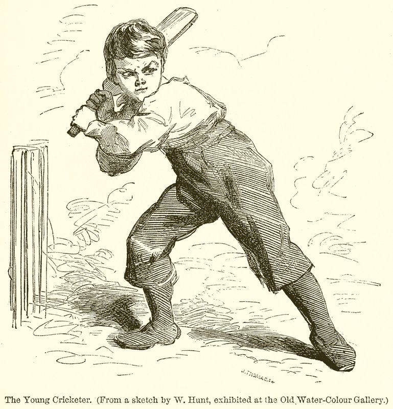 young cricketer · cricket · batting · Private Collection / Bridgeman Images · / Look and Learn |