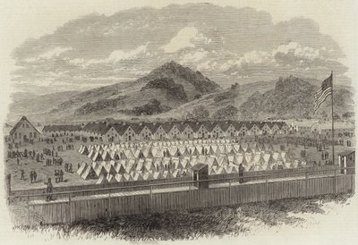 the war · america · american civil war · wars · tents · confederate army · union army · elmira · new york · Flags · Private Collection / Bridgeman Images · / Look and Learn