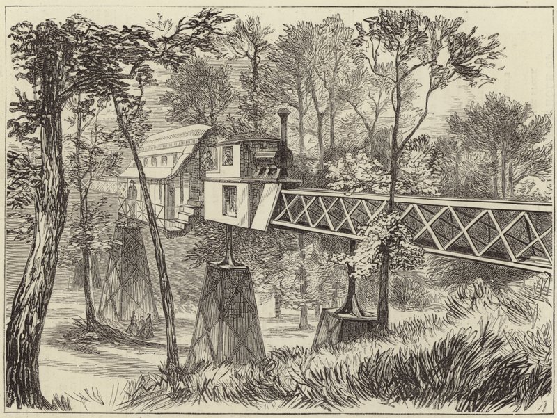 the american centennial celebrations · railways · trains · bridges · trees · Elevated Railways · Private Collection / Bridgeman Images · / Look and Learn |