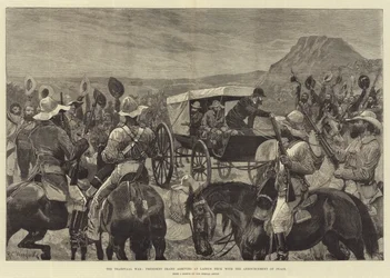 the transvaal war · transvaal · south africa · horse-drawn · transport · horses · people · politicians · presidents · laings neck · weapons · rifles · president bland · Private Collection / Bridgeman Images · / Look and Learn