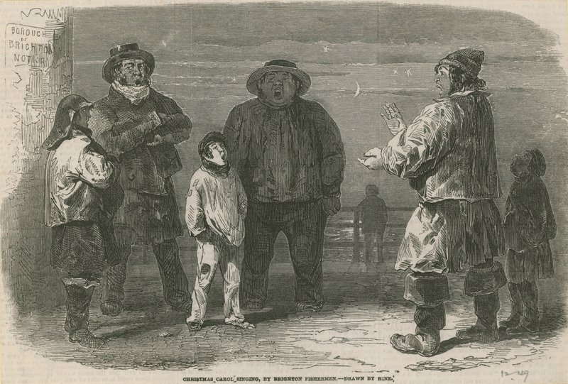 people · boys · east sussex · singing · singers · christmas carols · carol singers · brighton · christmas · carol · singing · Private Collection / Bridgeman Images · / Look and Learn |