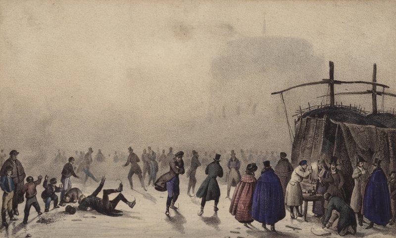 city · river · winter · frozen · women · skating · cold · Frost Fair · Private Collection / Bridgeman Images · / Look and Learn |