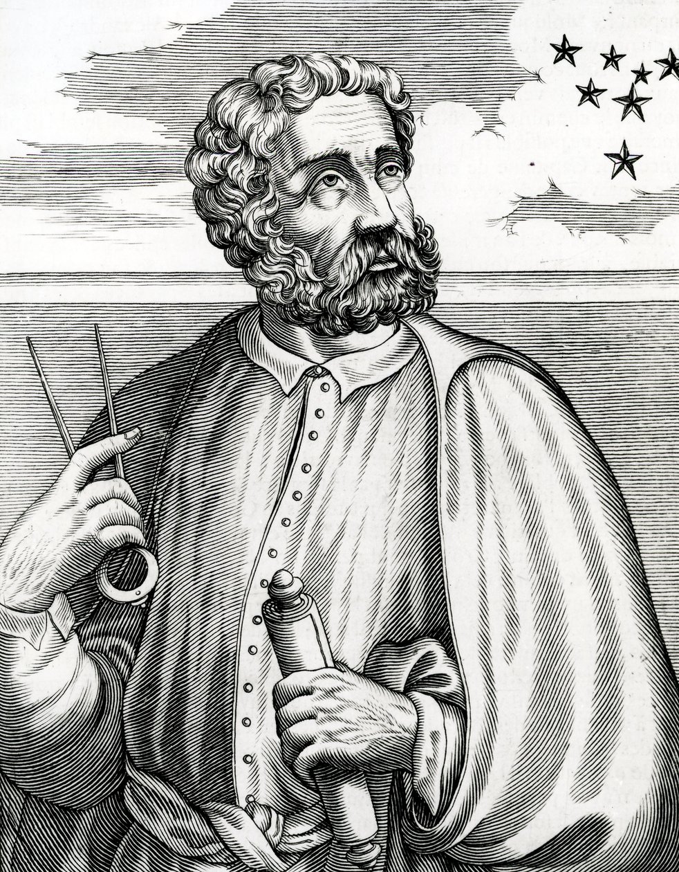 portrait · male · adult · ferdinand · magellan · portuguese · explorer · 19th century · c19th · sextant · instrument · instruments · Private Collection / Bridgeman Images