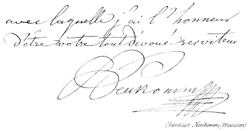 autograph · holograph · handwriting · writing · example · chevalier neukomm · musician · Private Collection / Bridgeman Images · / Look and Learn |