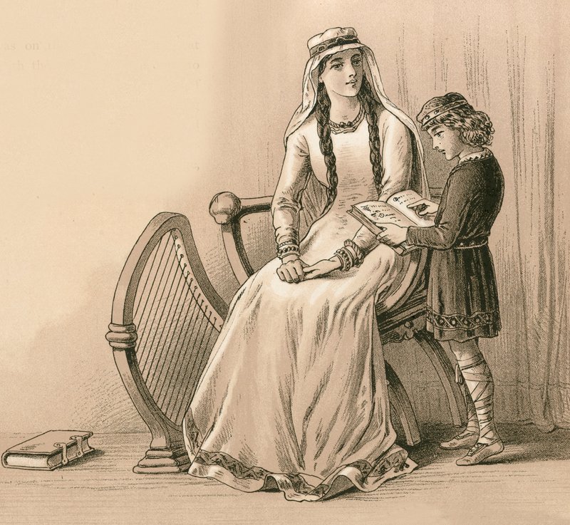 king alfred · stepmother · step · mother · reading · music · education · Private Collection / Bridgeman Images · / Look and Learn |