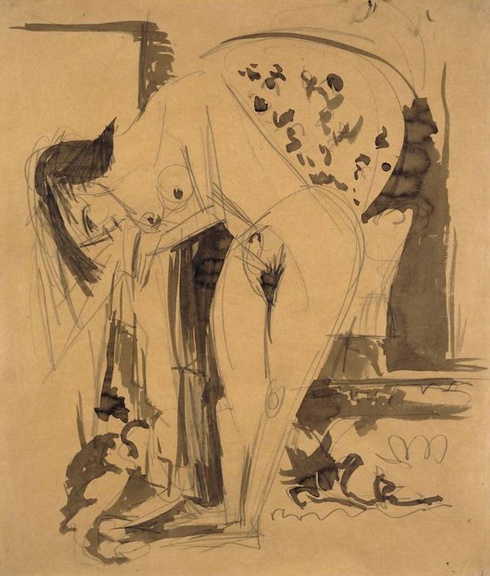 Bending Nude in Room(Sich bückender Akt im Raum)Ernst Ludwig Kirchner |