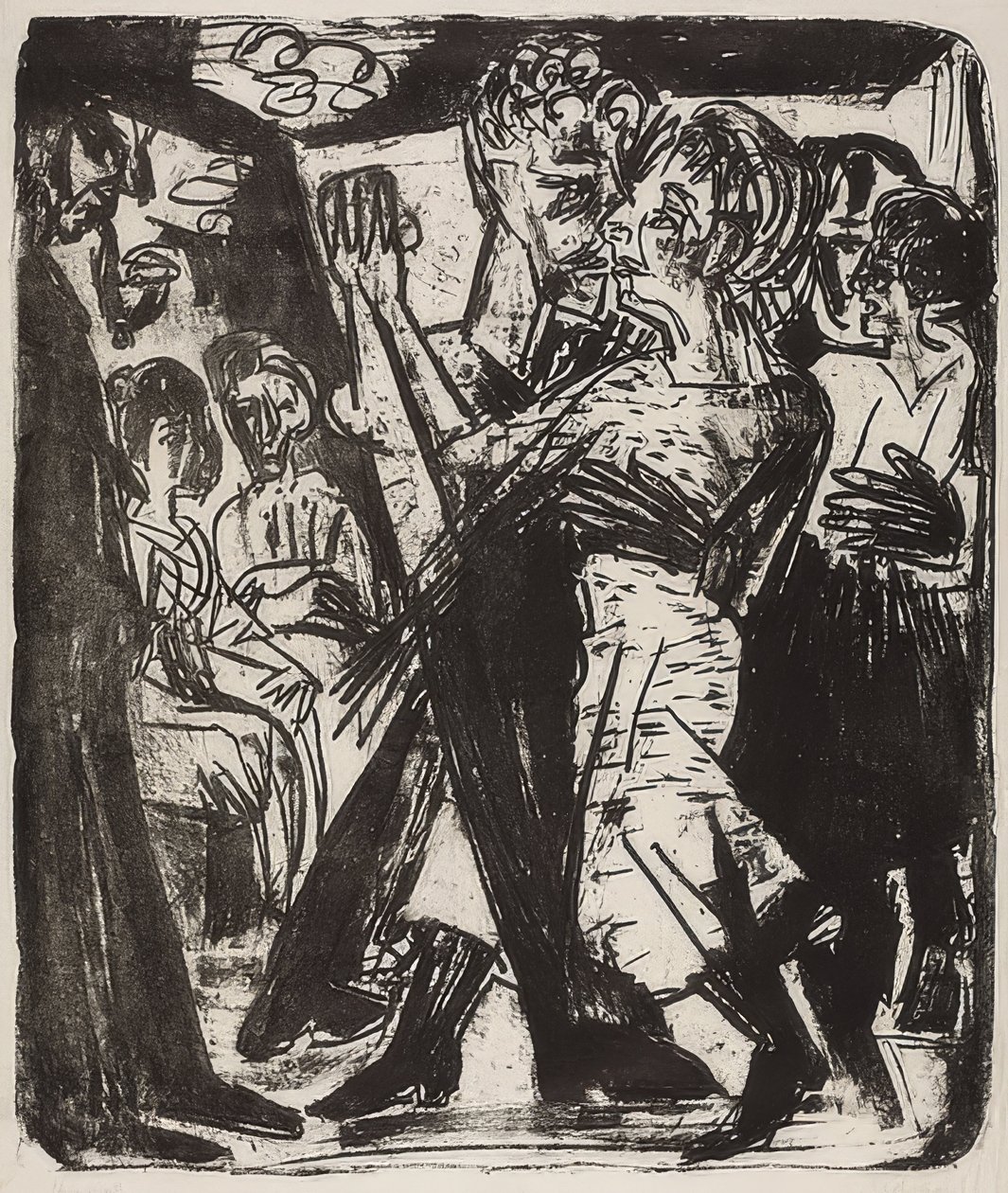 1880-1938 · 20st · 20th · bauernpaar · century · couple · dance · dancing · entertainment · ernst · expressionism · expressionist · expressionists · female · females · frankfurt · going · graphische · kirchner · lithography · ludwig · main · museum · nightlife · paper · peasant · sammlung · stadel · städel · tanzendes · woman · women · Städel Museum/ARTOTHEK |