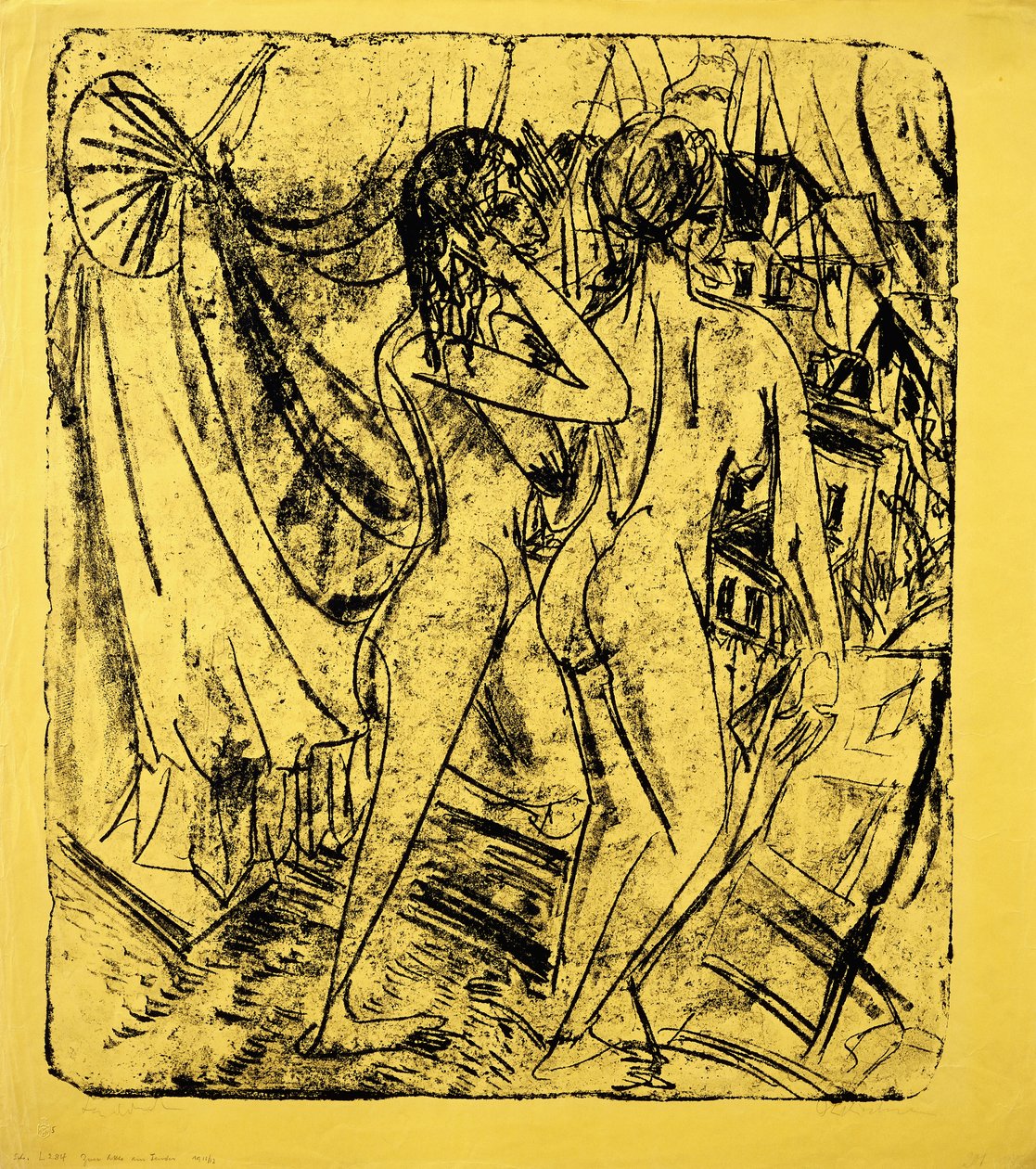 20th century · early twentieth century · yellow · window · back view · black · view from behind · standing · modern art · skin · full length · color · caucasian · caucasian ethnicity · early 20th century · european artist · black colour · posture · black color · inside · indoors · german art · artist german · from the back · naked · 1910s · artist european · german expressionist · ethnic origin · artist-german · full-length · indoor · two people · backview · twentieth century · expressionist · expressionism · back · bottom · buttock · german expressionism · nude · rear view · behind · colour · german artist · kirschner · ernest ludwig kirchner · ludwig kirchner · ernst ludwig kirchner · ernst-ludwig kirchner · kirchner · 1910s · ernst ludwig kirschner · die brucke · Private Collection / Bridgeman Images |