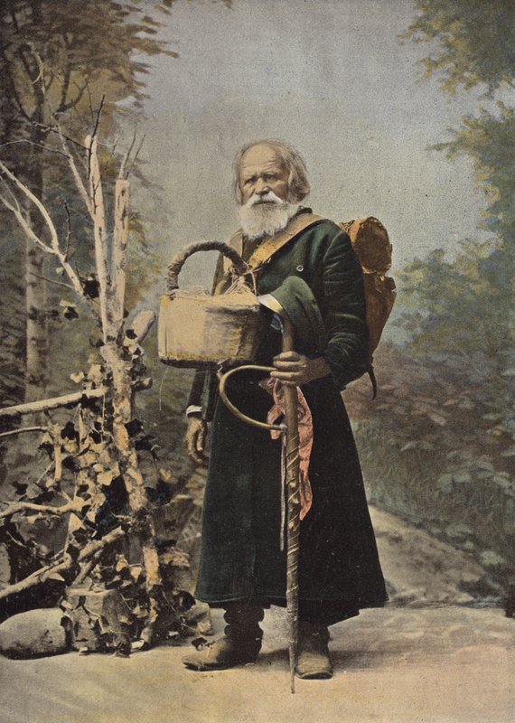 russie · russia · russians · russian · pelerin russe · pilgrim · christian · basket · knapsack · walking · stick · Private Collection / Bridgeman Images · / Look and Learn |