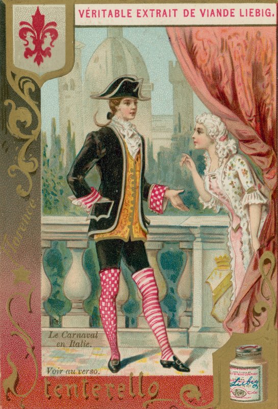 comedy · venice · characters · costumes · italian · stenterello · florence · Florence · Private Collection / Bridgeman Images · / Look and Learn |