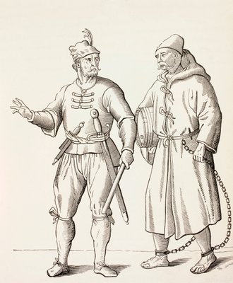 soldier · sword · slave · c16th · slavery · uniform · century · historical · middle ages · shackles · shackled · medieval · bondage · chains · paul lacroix · chained · 16th · sixteenth · early modern · Private Collection / Bridgeman Images