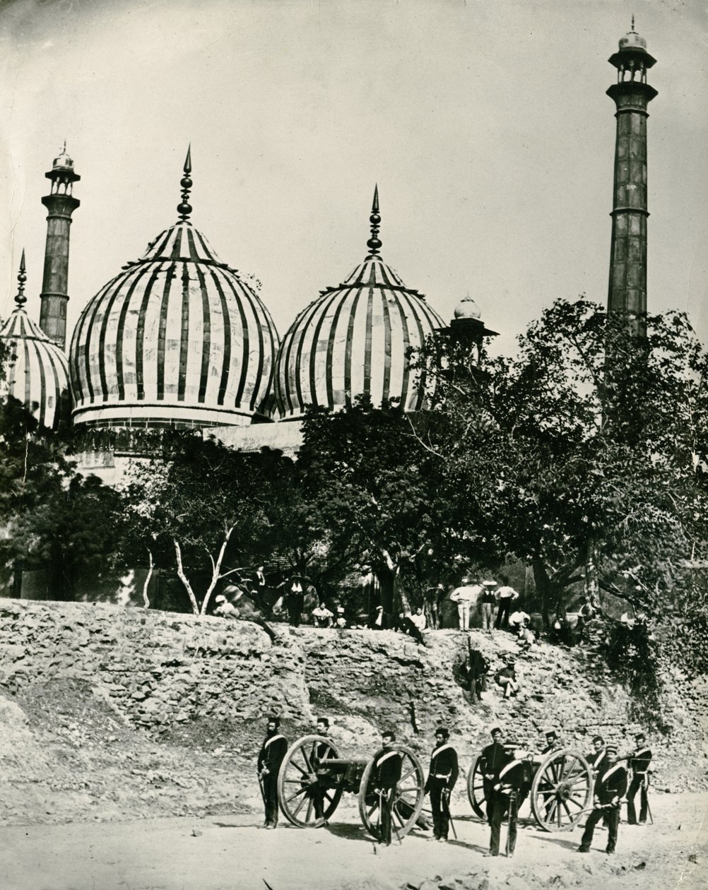 ghata masjid · delhi · india · british raj · mosque · indian · south asia · british army · cannons · artillery · soldiers · indian rebellion · zinat-ul-masjid · photography · dome · striped · domes · minarets · place of worship · muslim · building · exterior · religious · architecture · Private Collection / Bridgeman Images