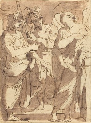 pen and brown ink with violet-brown wash over black chalk on wove paper