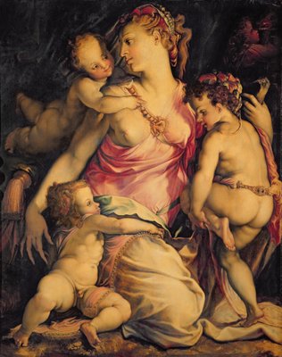 allegory · personification · putti · female · mannerist · mother · children · breast · virtue · maternal · maternity · Galleria degli Uffizi, Florence, Italy / Bridgeman Images