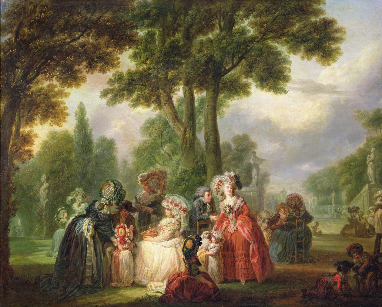 society life · assemblee dans un parc · male · female · group · children · mothers · mother · child · summer · Musee Cognacq-Jay, Paris, France / Bridgeman Images