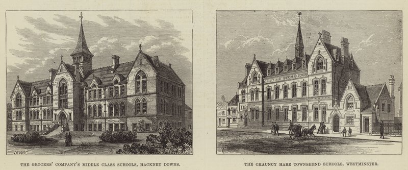 london school buildings · grocers companys middle class schools · hackney downs · chauncy hare townshend shools · westminster · london · architecture · education · Private Collection / Bridgeman Images · / Look and Learn |