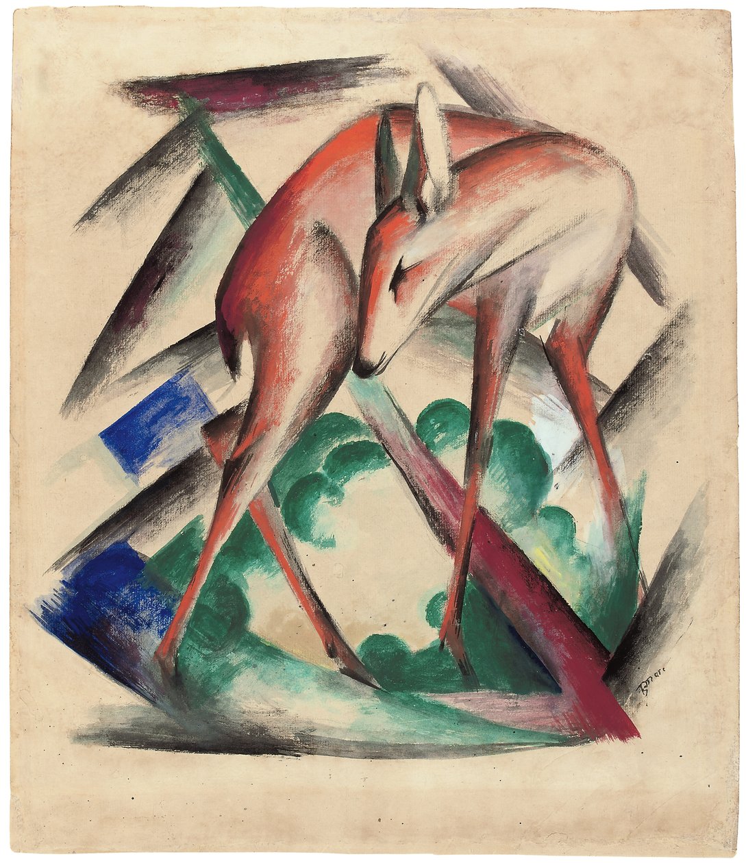 20th century · early twentieth century · outdoor · vulnerability · country · time of day · close-up · gentle · animal young · looking away · head turned · rural · no person · young · on paper · aversion · close up · outside · baby animal · deer · standing · daytime · drawing · modern art · closeup · watercolour · full length · mounted on paper · pencil drawing · early 20th century · pencil · one animal · european artist · no-one · hooved mammal · posture · plant part · water colour · watercolor · foliage · countryside · german art · artist german · turning away · paper · 1910s · outdoors · water color · mammal · plant · artist european · animal · german expressionist · artist-german · looking · full-length · nobody · side view · young animal · twentieth century · expressionist · expressionism · no people · artwork · german expressionism · german artist · side · painting · franz marc · marc · 1910s · gouache · Private Collection / Bridgeman Images