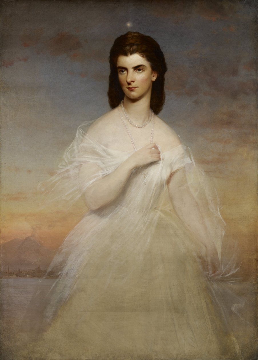 white · clouds · dress · female · hair · transparent · somber · ominous · lonely · portrait · queen · maria · sophia · Naples |