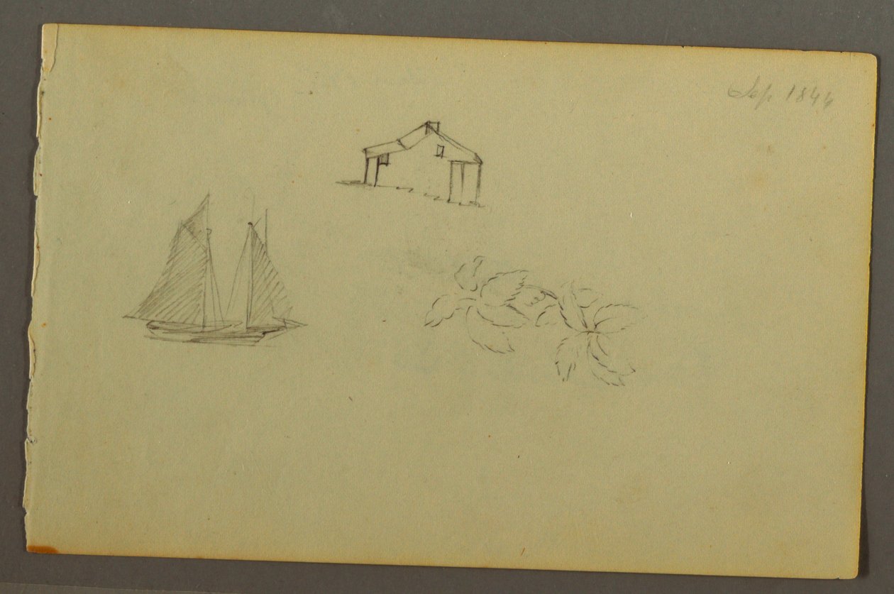 House, Sailboat, Plant, September 1844(Drawing, House, sailboat, plant, September 1844)Frederic Edwin Church |