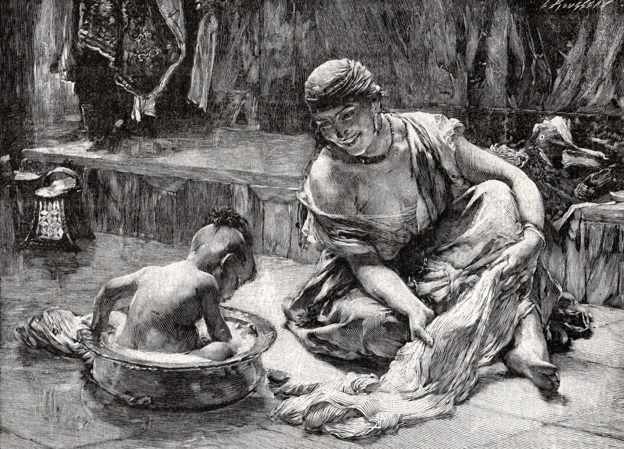 afrique du nord · bain · bath · cleanness · famille · family · higyene · maternite · motherhood · north africa · proprete · / Bridgeman Images |