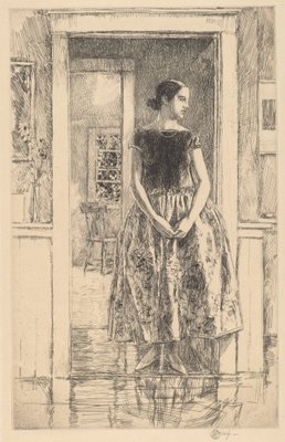 female · women · woman · people · interior · arts · doorway · country · clothes · washington · dress · location · century · gallery · inside · skirt · clothing · print · twenties · full length · full-length · art gallery · united states of america · indoors · black white · black and white · 1920s · national gallery of art · 20th century · american · america · etching · united states · young women · young woman · frederick childe hassam · hassam · frederick childe · hassam · childe · childe hassam · frederick childs hassam · art centre · heritage art · print · etching and drypoint in black on wove paper · Heritage Art/Heritage Images