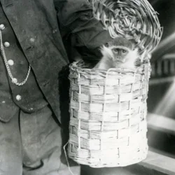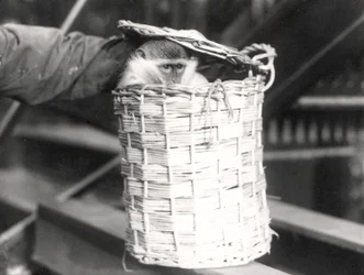 A keeper holds an Old World Monkey in a hamper, London Zoo, December 1922(A keeper holds an Old World Monkey, genus Ceropithecus, in a hamper, London Zoo, December 1922 (bw photo))Frederick William Bond |