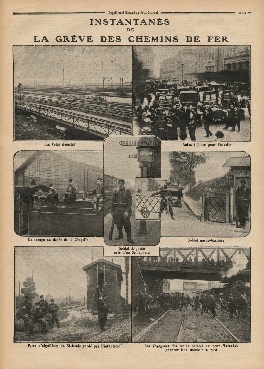 Snapshots of the rail strike, illustration from 'Le Petit Journal', supplement illustre, 23rd October 1910(Snapshots of the rail strike, illustration from 'Le Petit Journal', supplement illustre, 23rd October 1910 )French Photographer |