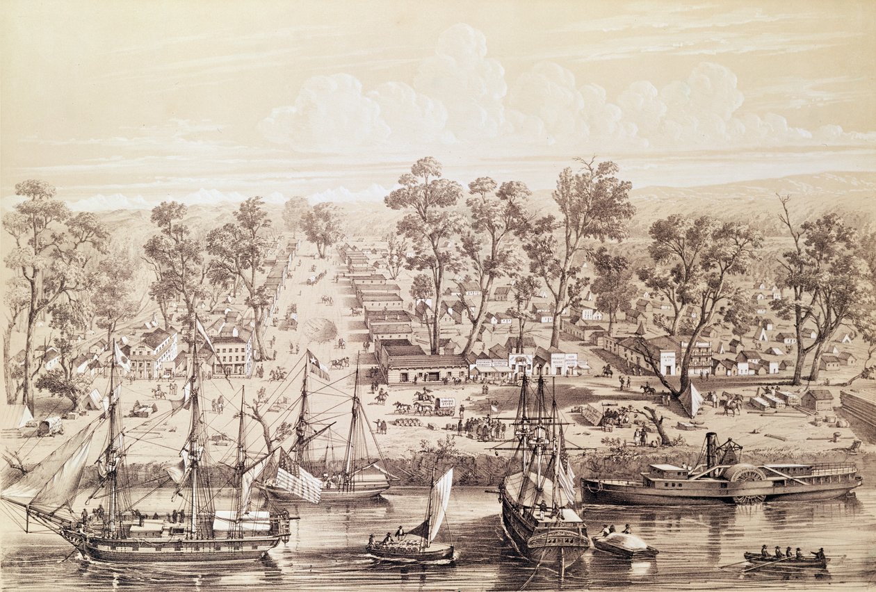 port · harbour · boats · boat · ships · ship · american landscape · california · river · sierra nevada · street · streets · daily life scene · Bibliotheque Nationale, Paris, France / Bridgeman Images |