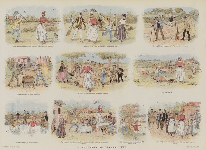 A Suburban Butterfly Hunt(A Suburban Butterfly Hunt (chromolitho))French School |