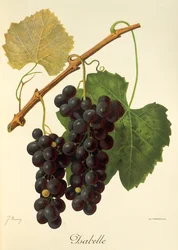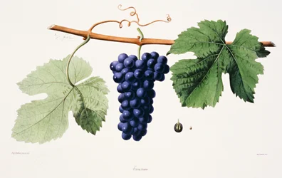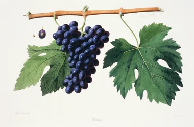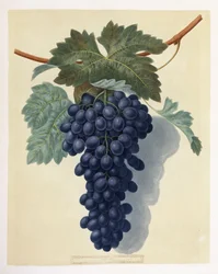 bunch · white background · red grape · biology · grape · winemaking · leaf · branch · botany · no people · vine · horizontal · ampelography · no peoplehorizontalwhite backgroundillustration and paintingbiologybotanygrapered grapebunchwinemakingvineleafbranchampelograph · grape grenache · / Bridgeman Images