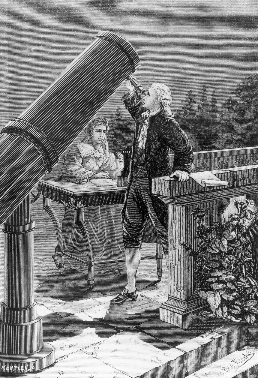 13 march 1781 · telescope · star · gazing · studying · astronomer · science · discovering · kemplen · paul fouche · astronomy · Private Collection / Bridgeman Images |