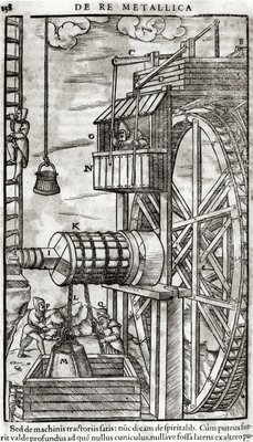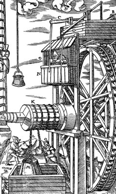 pulley · engineering · waterwheel · wheel · well · mining · miner · work · labour · treatise · mining · metal · Bibliotheque du Museum d'Histoire Naturelle, Paris, France / Bridgeman Images