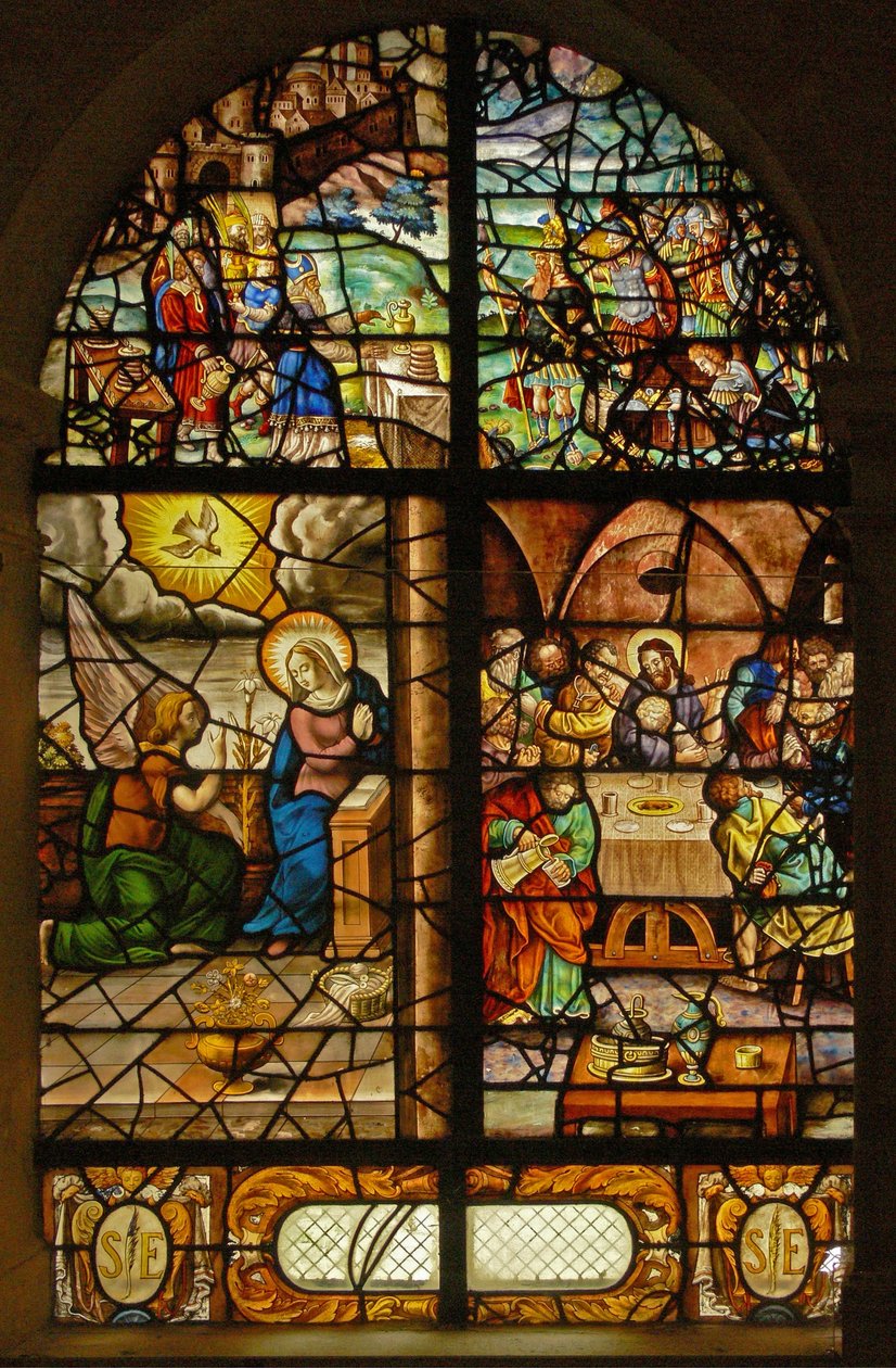 Window Charnier-12 Depicting Melchisedek, Annunciation, Last Supper(Window Charnier-12 depicting Melchisedek, Annunciation, Last Supper )French School |